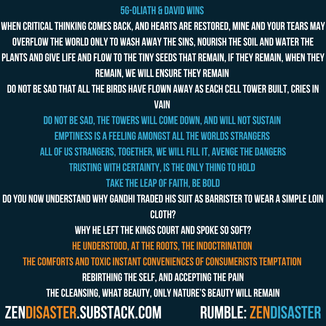 Do not be sad that all the birds have flown away as each cell tower built, cries in vain. Do not be sad, the towers will come down, and will not sustain.